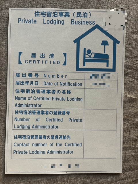 民泊の届出も受理され、届出済みの紙を頂きました。